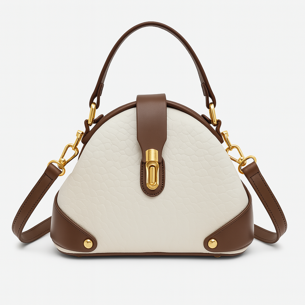 Finitions: Détails métalliques dorés (boucles, rivets, mousquetons).