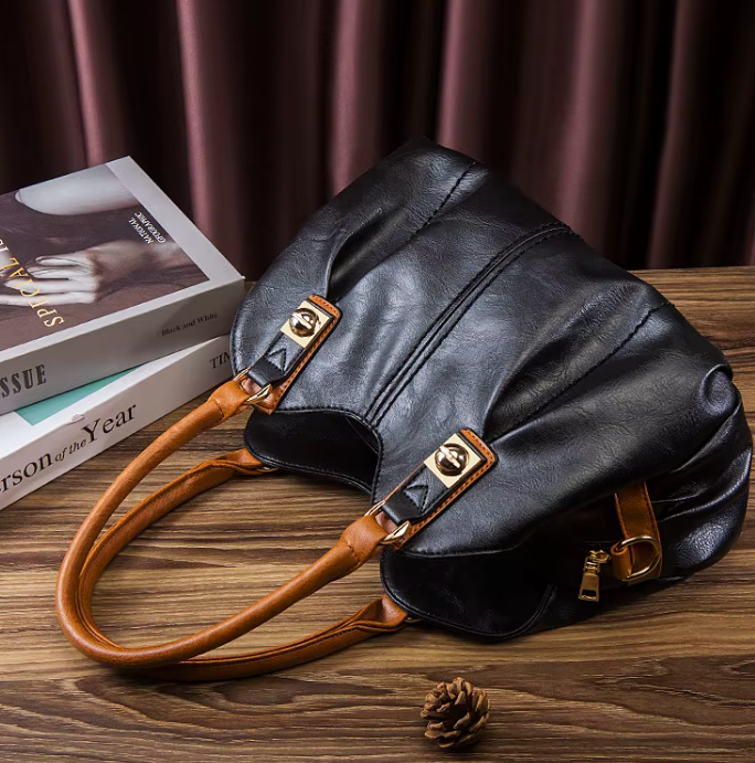 Grand sac cabas avec double anses rigides et fermeture zippée.