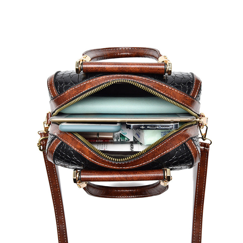 Fermeture : Double zip doré pour accès séparé aux deux compartiments.